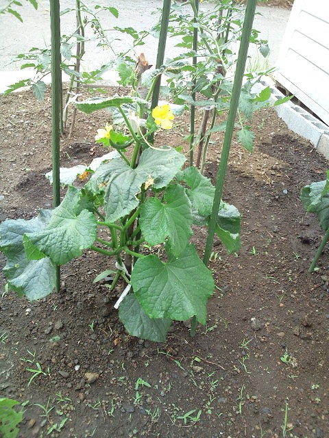 花が咲いて、大きい実は、10㎝くらいまでになりました。あと3日ほどで、収穫です。